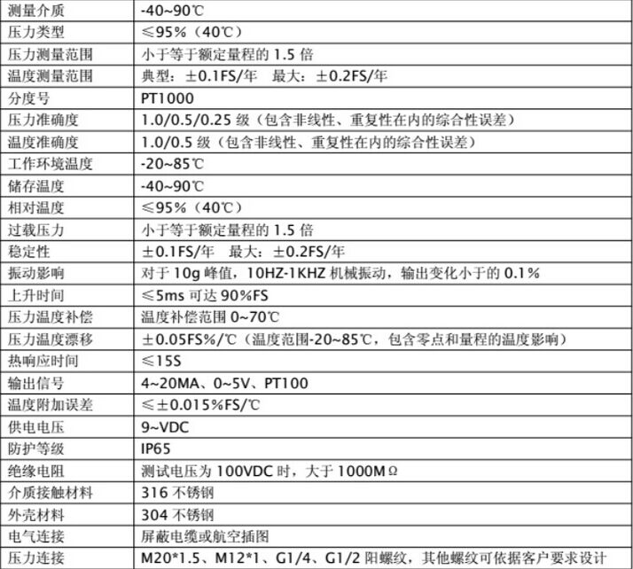 YK型壓力溫度一體化變送器內置溫度/壓力敏感元件,二路輸出互不影響,消耗一個傳感器的功率就可完成壓力和溫度的測量。廣泛用于科研、軍工、石化、電力、冶金機械及環(huán)保領域。如油井溫度壓力測量、柴油發(fā)動機共軌溫度壓力測量、注塑機械溫度壓力測量等。