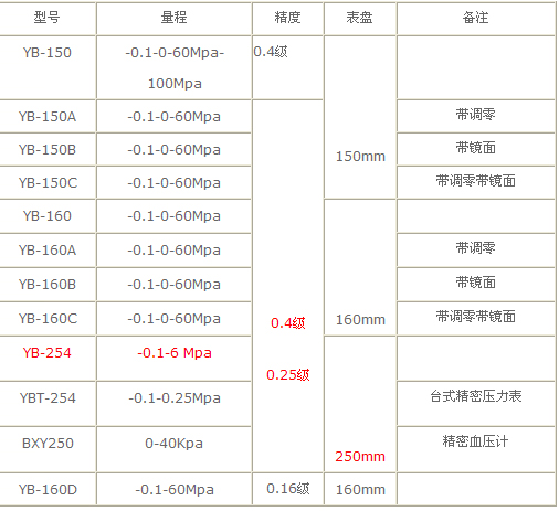 名稱:YB-254精密壓力表