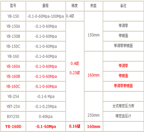 型號及規(guī)格代號:YB-160A帶調(diào)零裝置